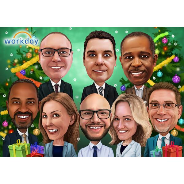Karikatyrer kan skapas på många sätt, från att bära jultomtekostymer eller julhattar till att dekorera din arbetsyta med festliga inslag som en öppen spisbakgrund eller en släde. Dina kollegor kommer att känna mer kamratskap och moralen stärks av en festlig arbetsatmosfär. Det ger en paus från arbetet och en chans att delta i semesterstämningen.